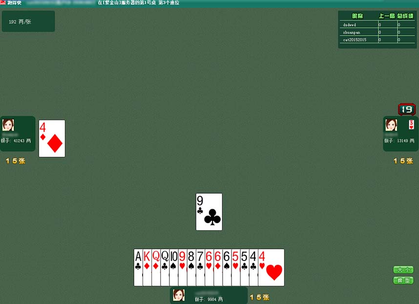 一副牌,除去大王、小王、红桃2、草花2、方块2、黑桃A,剩余48张牌。三个玩家各16张牌。第一个人将所有牌全部出完,其他两人判负。